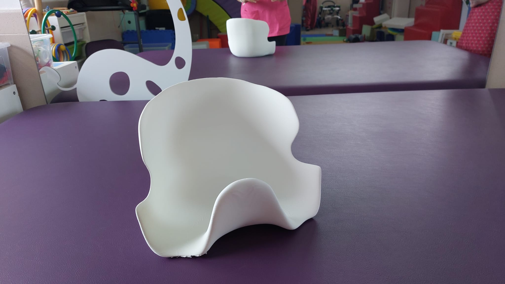 Asiento diseñado para controlar la postura, en especial la cadera, de niños y niñas de 1 año. Elaborado a partir del escaneo de una niña. Es un asiento genérico, se deben revisar las medidas antes de su impresión. Si se posiciona en la cama correctamente puede imprimirse de una pieza en una impresora de 256 × 256 × 256 mm (Bambu Lab P1s, ELEGOO Centauri…). Elaborado por ASPACE Gijón.